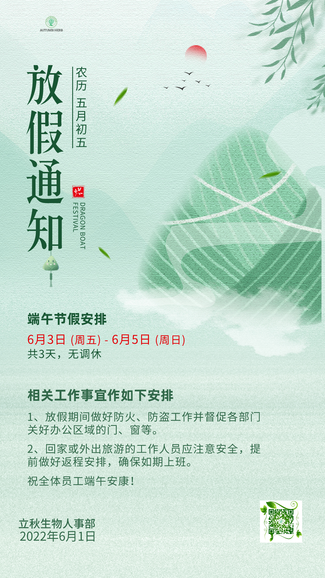 Dragon Boat Festival Holiday